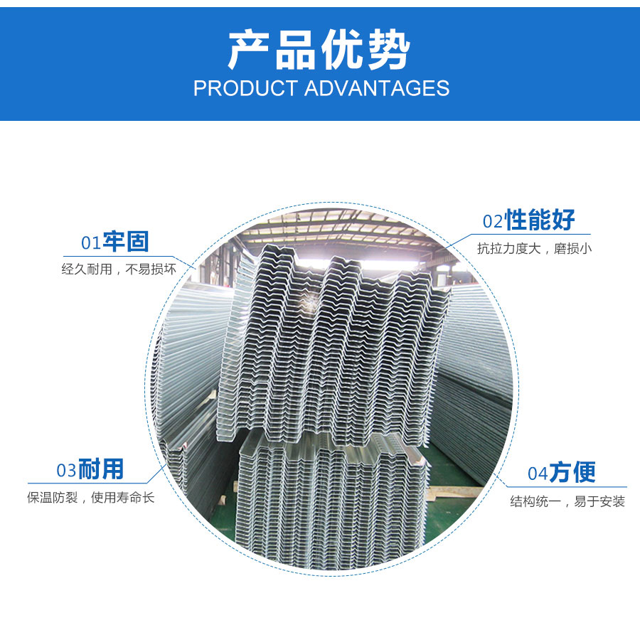 760開口樓承板即建筑壓型鋼承樓板采用鍍鋅鋼板經輥壓冷彎成型,其截面成V型、U型、梯形或類似這幾種形狀的波形,主要用作樓承板,也可被選為其他用途。